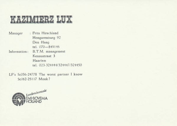 Kaz Lux (Brainbox) - 1970s [Holland] - Publicity Photocard