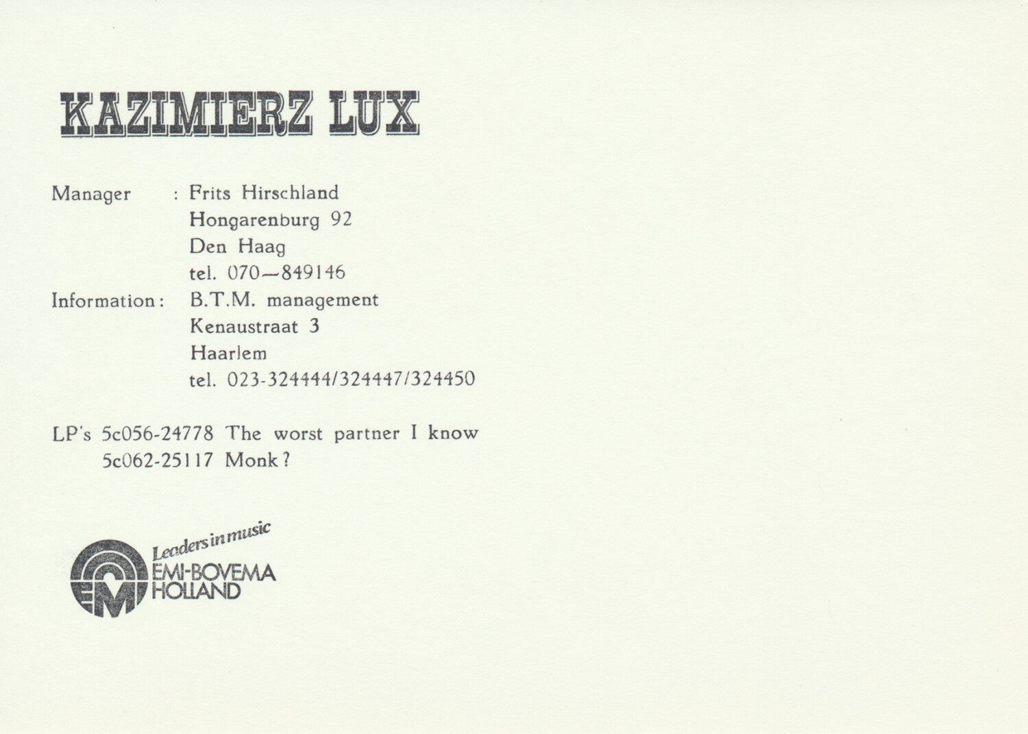 [101593] EMI-Bovema Holland. 1970s. 14.5x10.4cm. Condition: excellent.