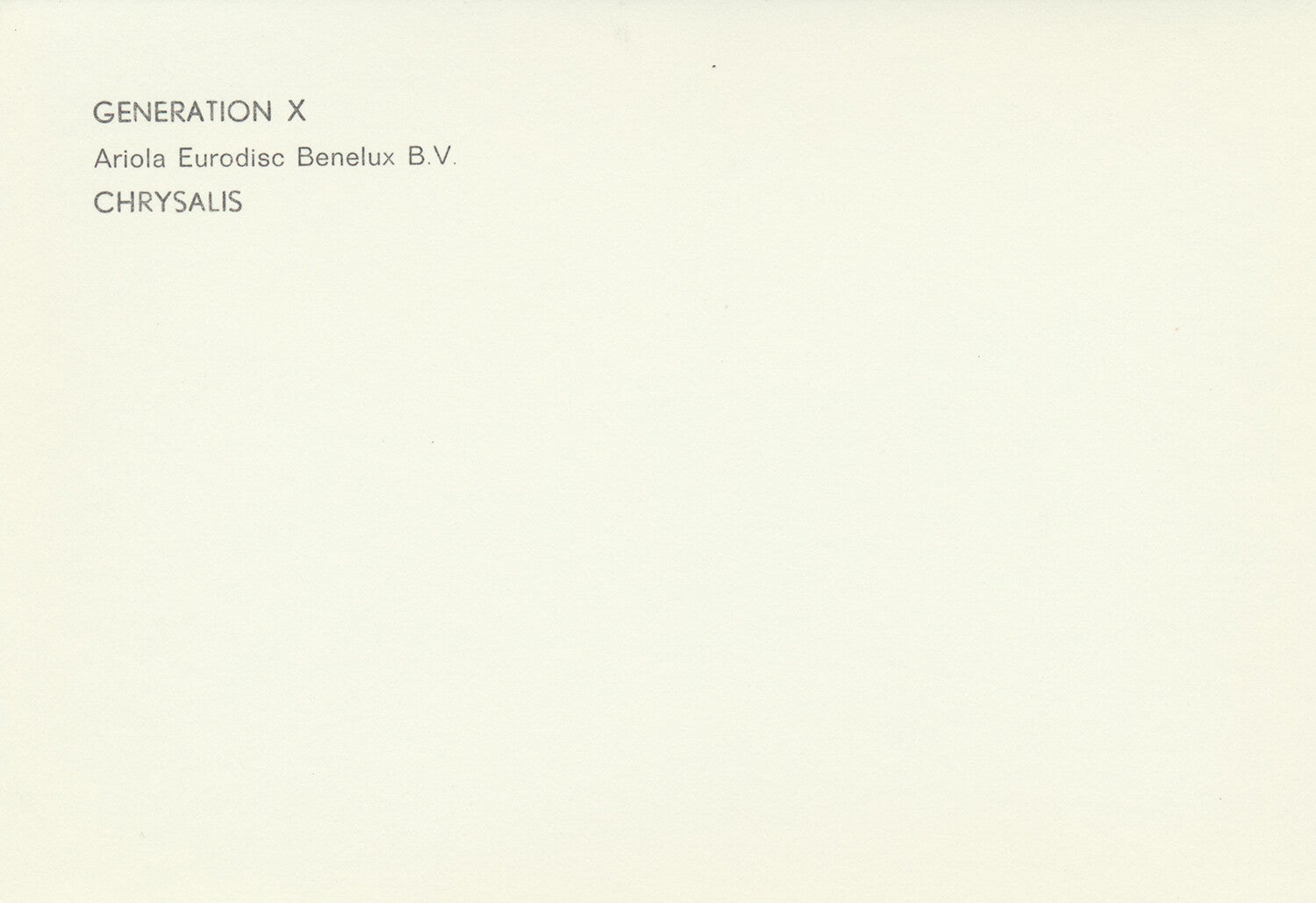 [101690] Chrysalis Records / Ariola Eurodisc Benelux BV. 1977. Punk / New Wave. 17.8x12.3cm. Condition: excellent.
