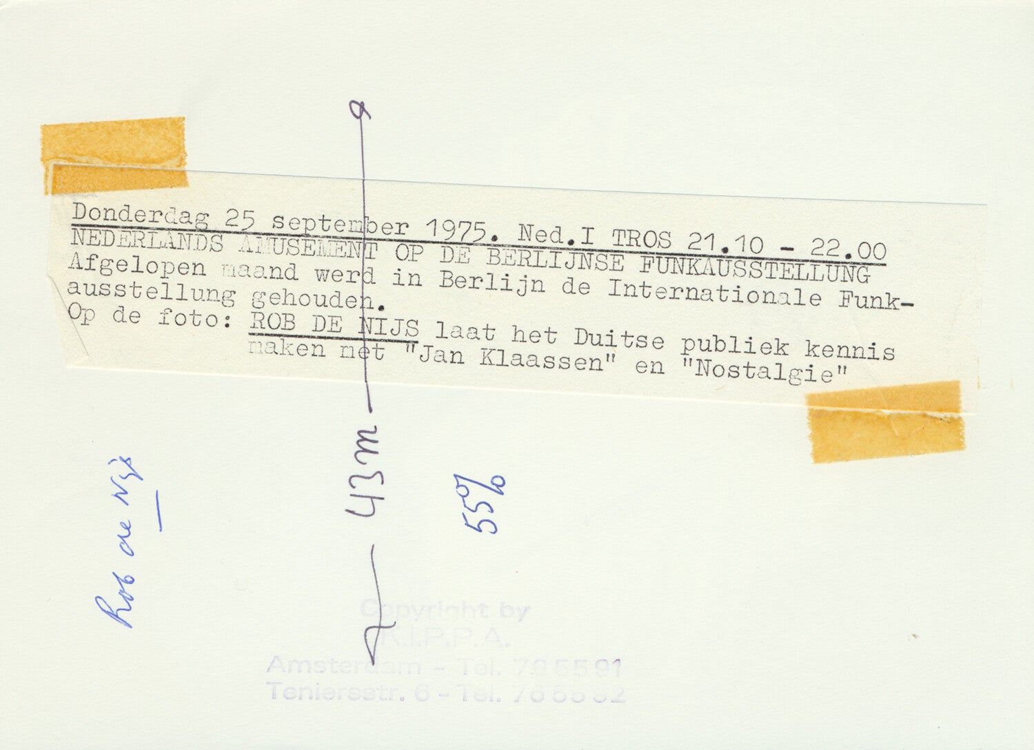 [102018] Funkausstellung, Berlin. TROS, Nederland 1, September 25, 1975. 12.7x17.5cm. Condition: very good plus.