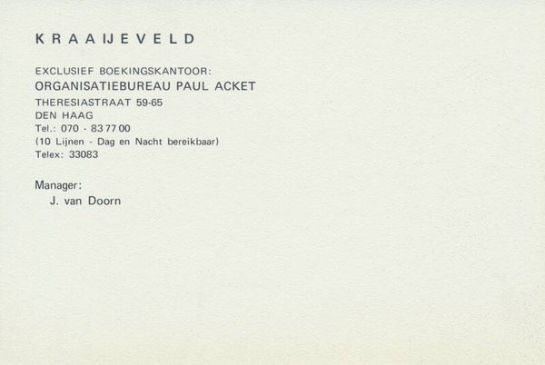Kraaijeveld (Bintangs) - 1970s [Holland] - Publicity Photocard