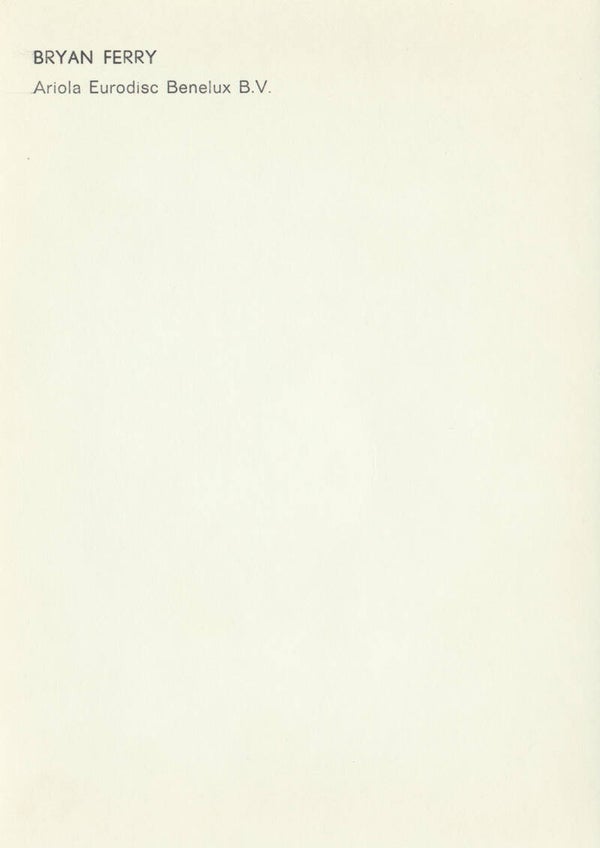 Bryan Ferry (Roxy Music) - 1970s [Holland] - Publicity Photocard