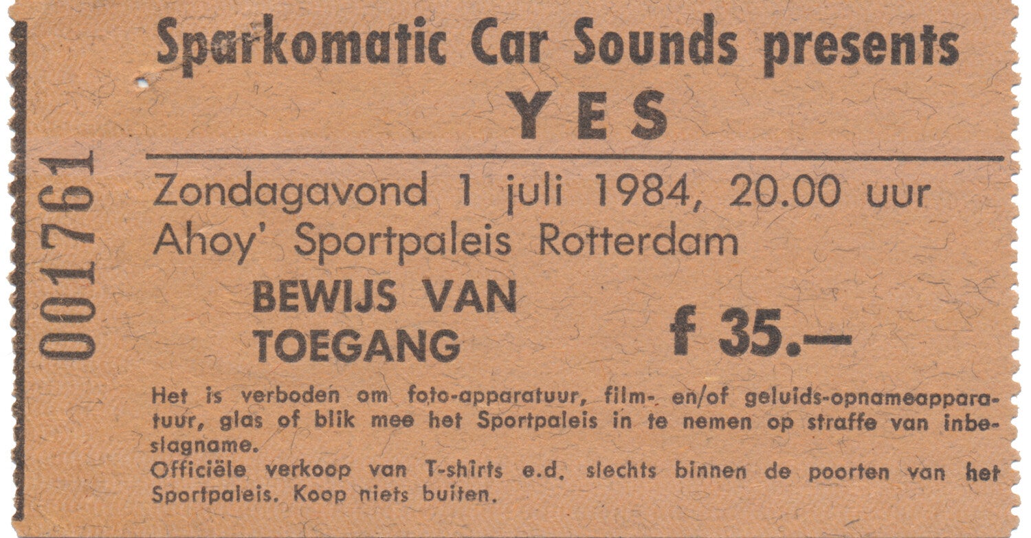 Yes - Sportpaleis Ahoy', Rotterdam, July 1, 1984 [Holland] - Ticket Stub