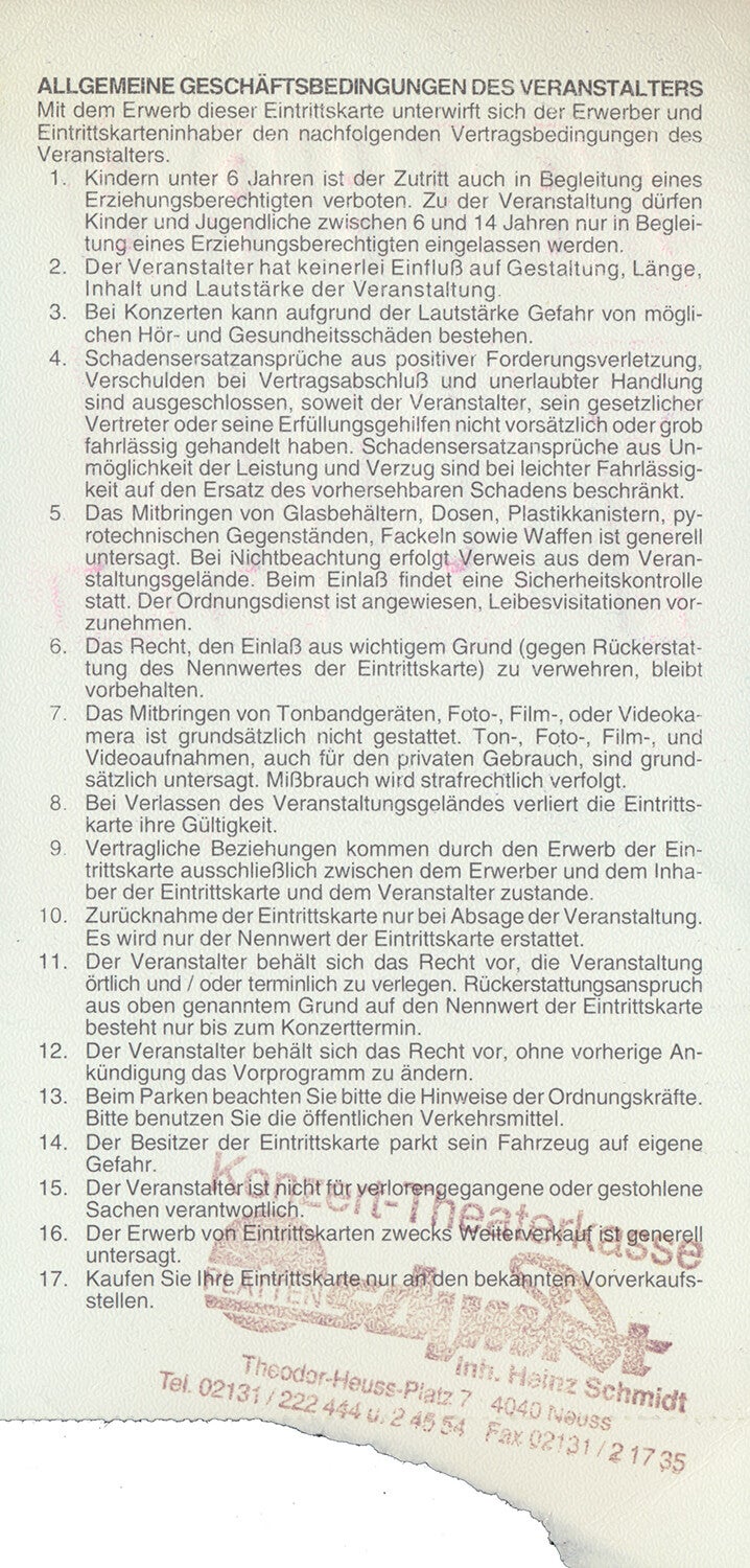 [102704] Mama Concerts & Rau. Tanzbrunnen, Cologne, June 3, 1993. Condition: excellent.