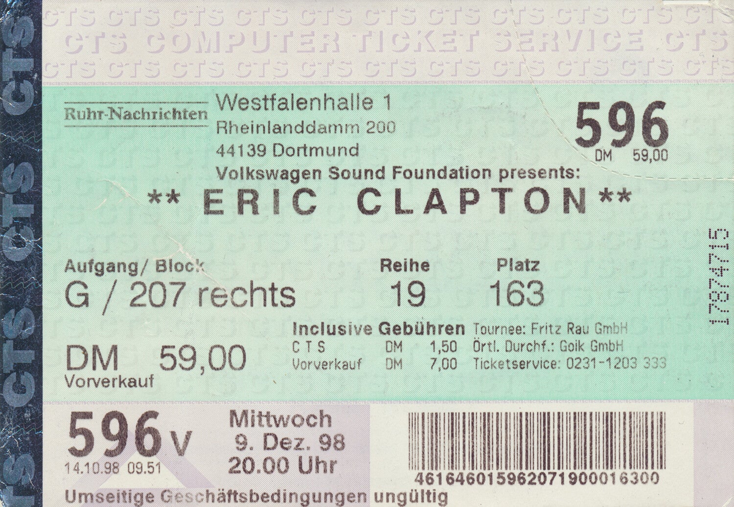 [102642] Fritz Rau. Westfalenhalle, Dortmund, December 9, 1998. 12.5x8.8cm. Condition: very good plus.