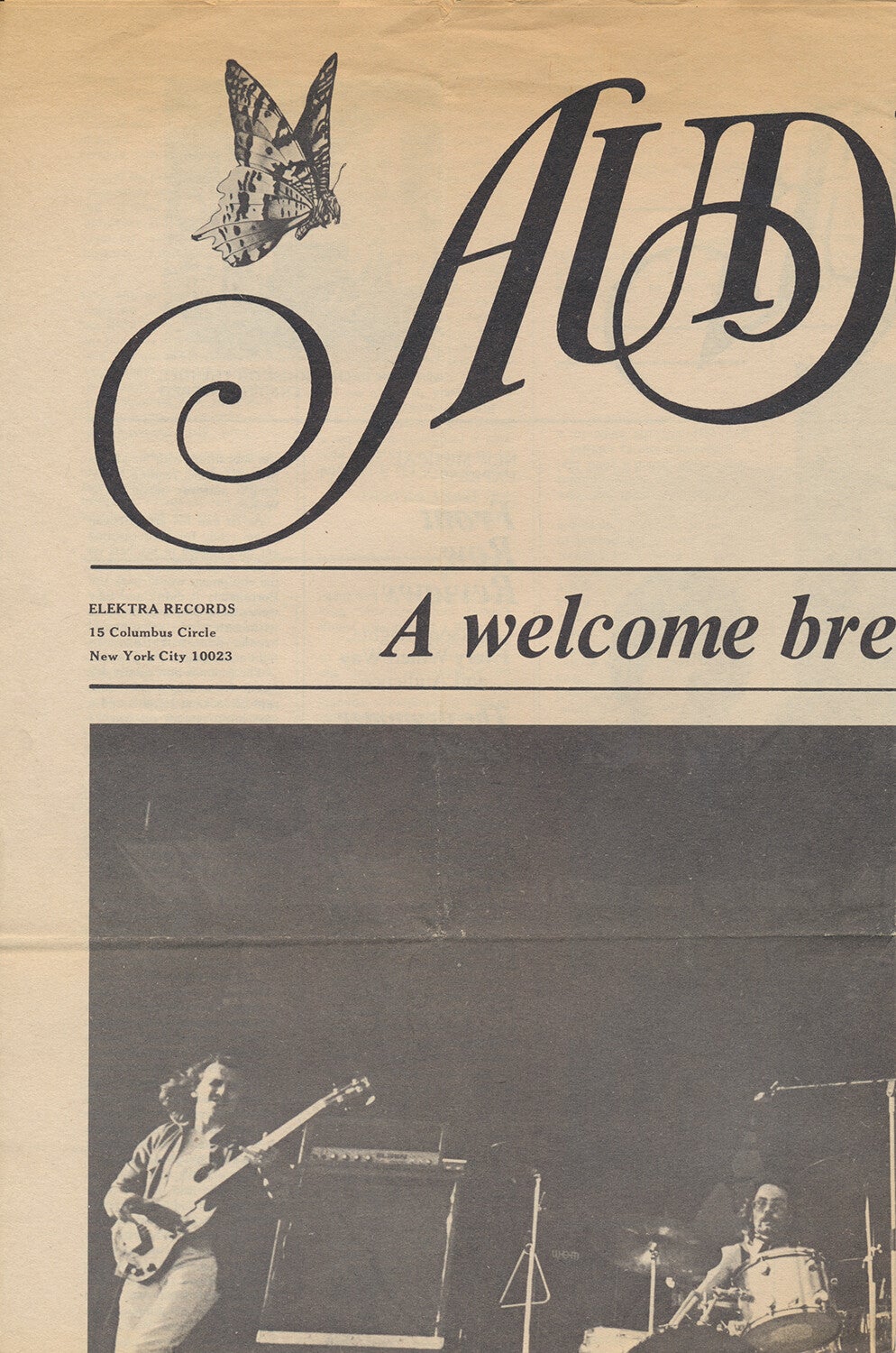 [102873] Elektra Records. New York City. 1971. 38.0x57.0cm. Newspaper style press release complete with 25.1x20.5cm publicity photo. Condition: excellent, folded.