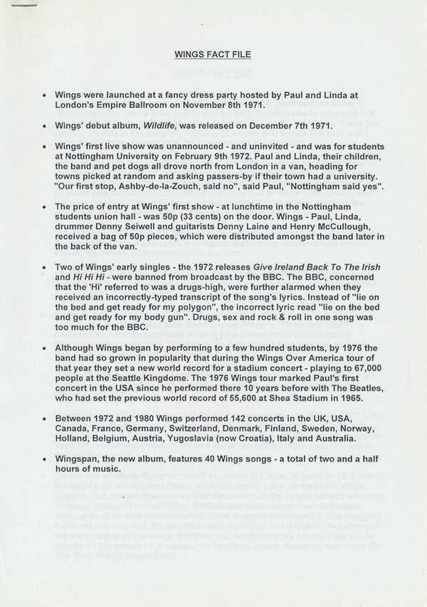 [102927] MPL Communications. 2001. 21.0x2.97cm. Four panel folder with 4pp press release. Condition: excellent.