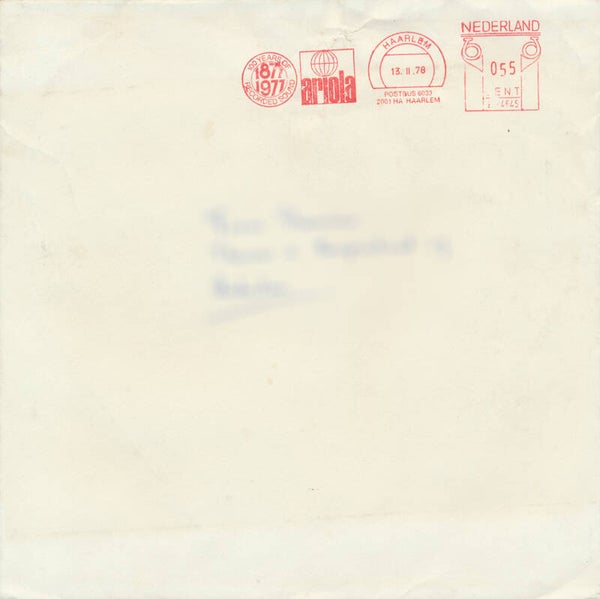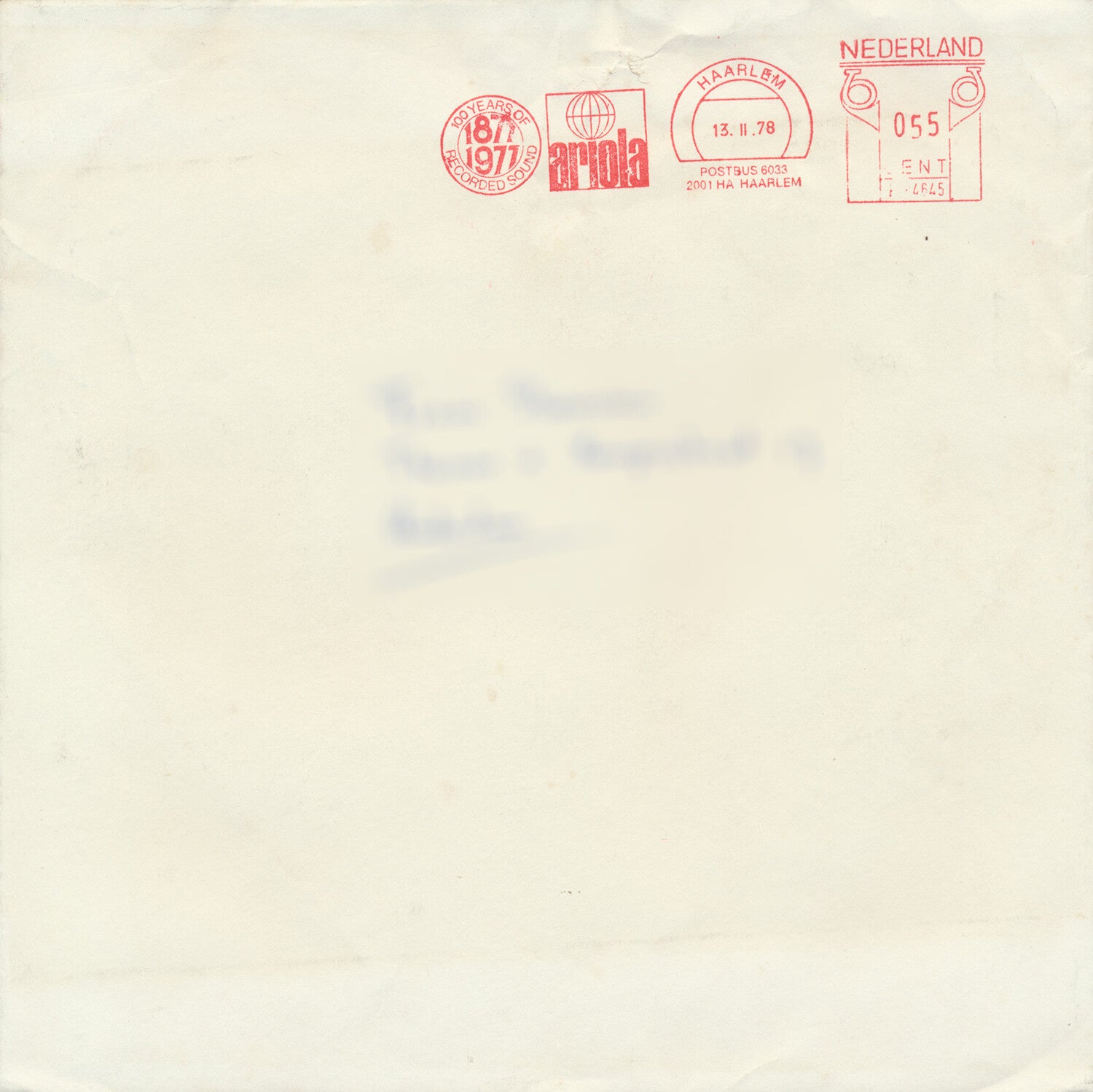 [102973] Ariola. Haarlem. February 13, 1978. Heart-shaped promotional card in original shipping mailer. Condition: very good plus.