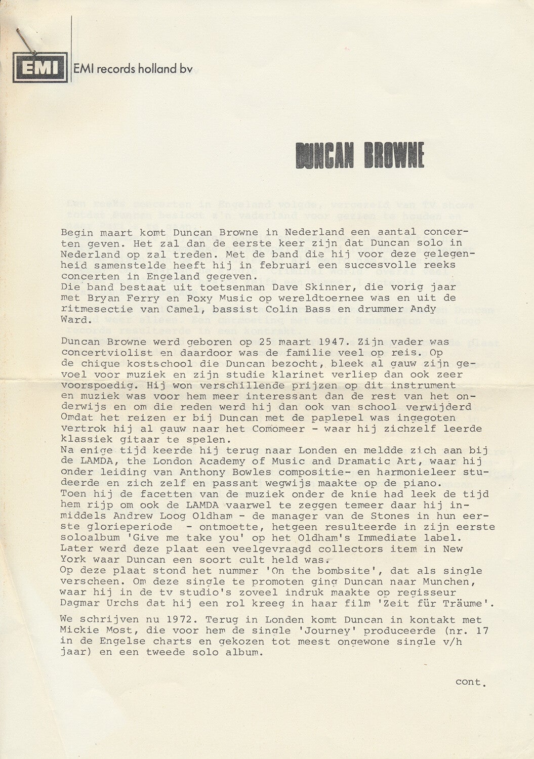 [103006] EMI Records Holland BV. 1979. 21.0x29.7cm. 2pp. Condition: very good plus.