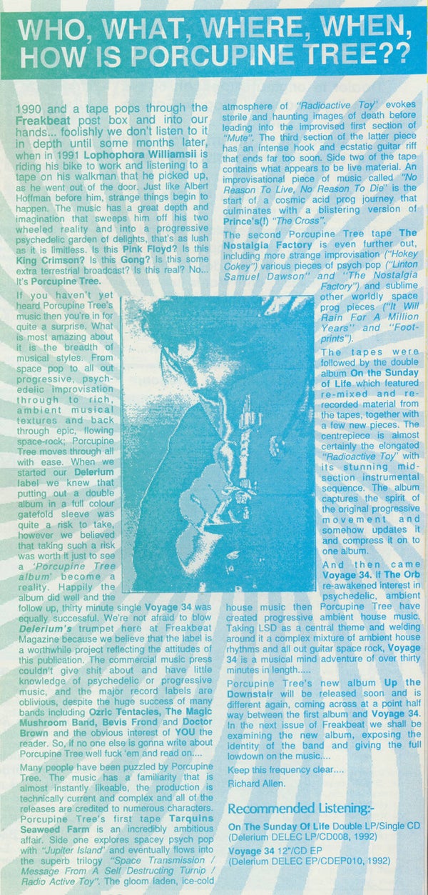 [103034] Ivor Trueman / Richard Allen. Freakbeat Magazine. Gerrards Cross, UK. April 19, 1993. 29.5x21.0cm. 56pp. First edition. Porcupine Tree - Amon Düül II - Dr. Brown - Mandragora - Sun Dial. Includes catalogue. 7inch missing. Condition: excellent.