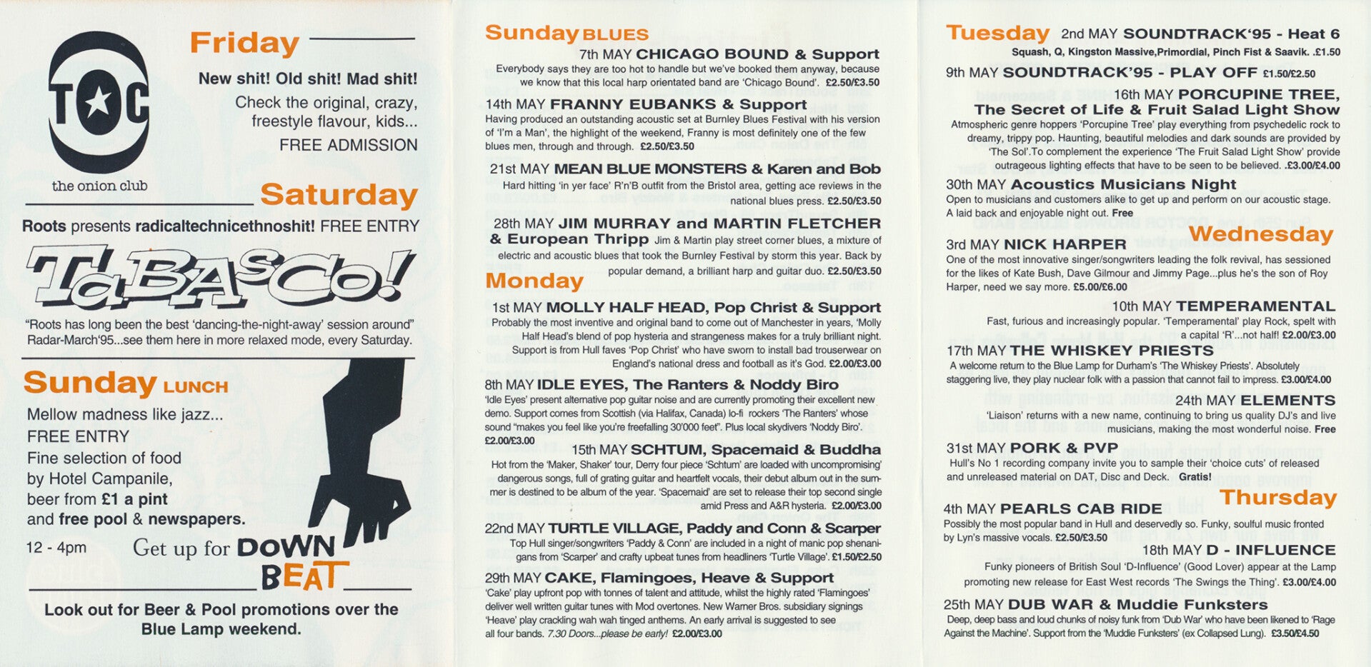 Porcupine Tree - Blue Lamp, Hull, May 16, 1995 [UK] - Programme