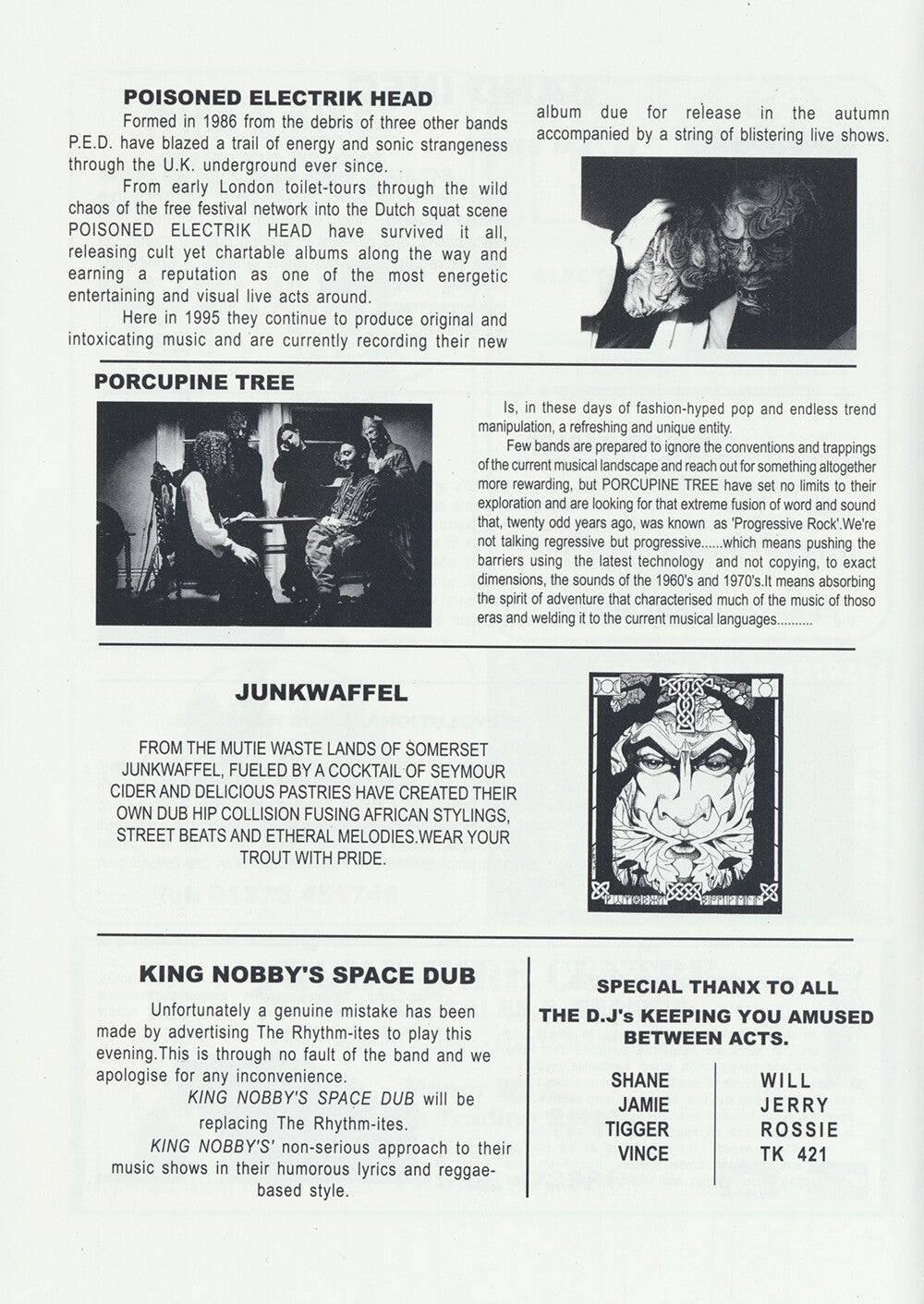 Porcupine Tree - One World Festival, Frome, September 2, 1995 [UK] - Programme
