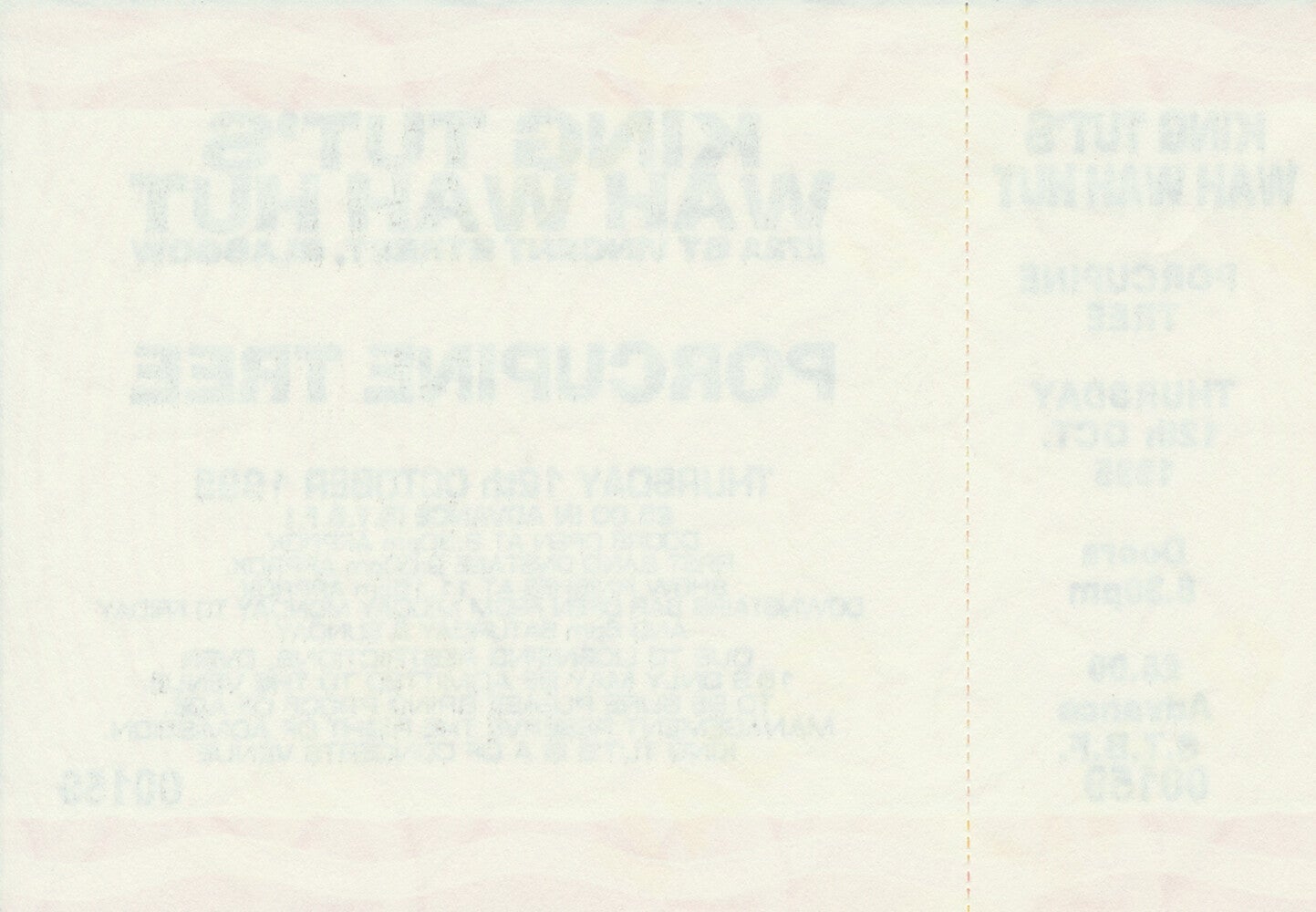 Porcupine Tree - King Tut's Wah Wah Hut, Glasgow, October 12, 1995 [UK] - Ticket Stub