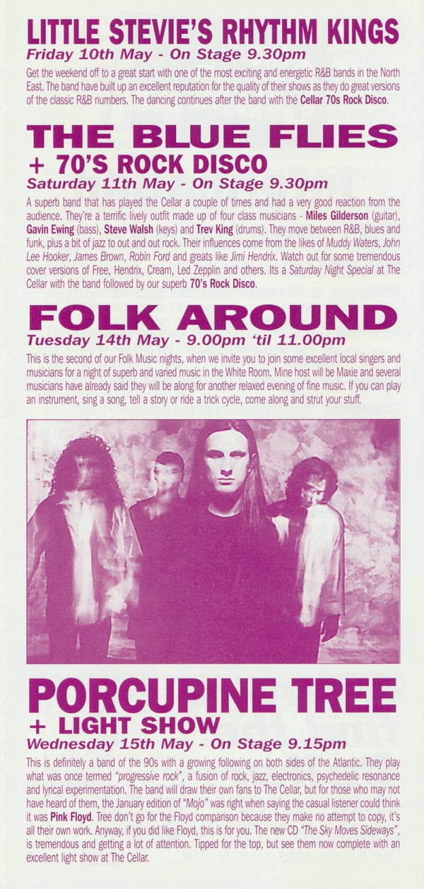 [103168] The Cellar, South Shields, May 15, 1996. 9.9x21.0cm. Eight panel foldout press brochure. Condition: excellent.