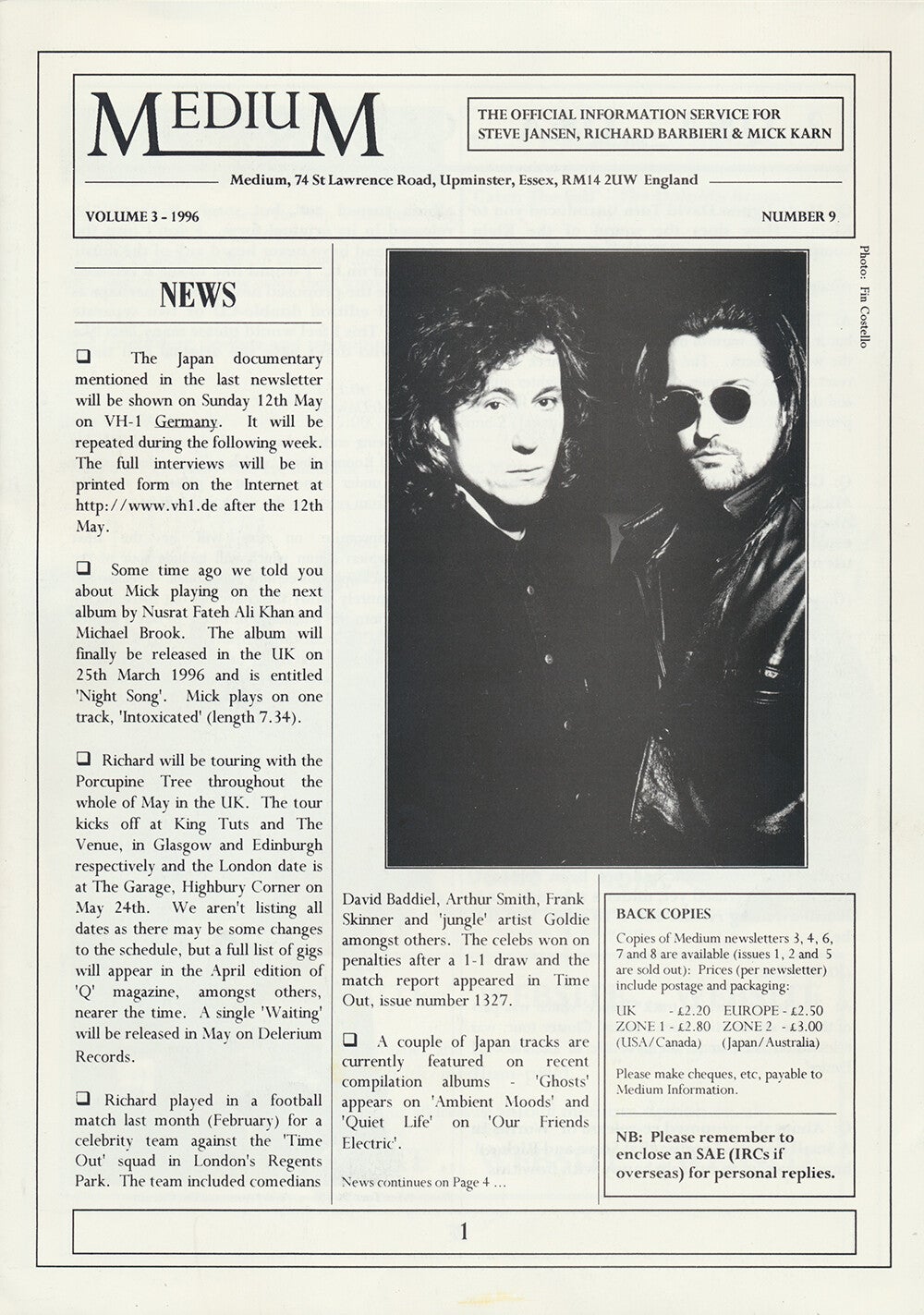 Porcupine Tree - Medium - Number 9 - 1996 [UK] - Newsletter