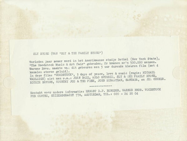 Sly Stone - Woodstock - 1970 [Holland] - Publicity Press Photo