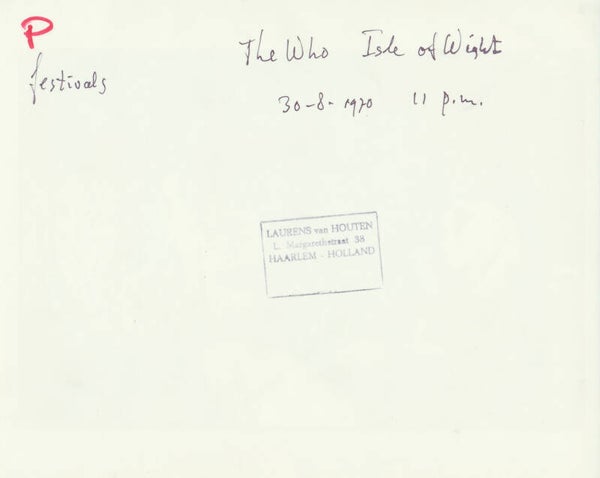 [103719] Laurens van Houten. Isle Of Wight, August 30, 1970. Original photographer's print with Laurens van Houten copyright stamp and annotations on reverse. Condition: very good plus.